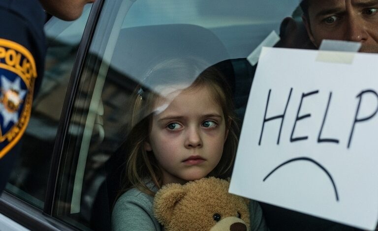 A police officer spotted a childs drawing pressed against a car window, a sad face with the word HELP, Something felt off, so he quietly tailed the vehicle, and what he uncovered left him speechless