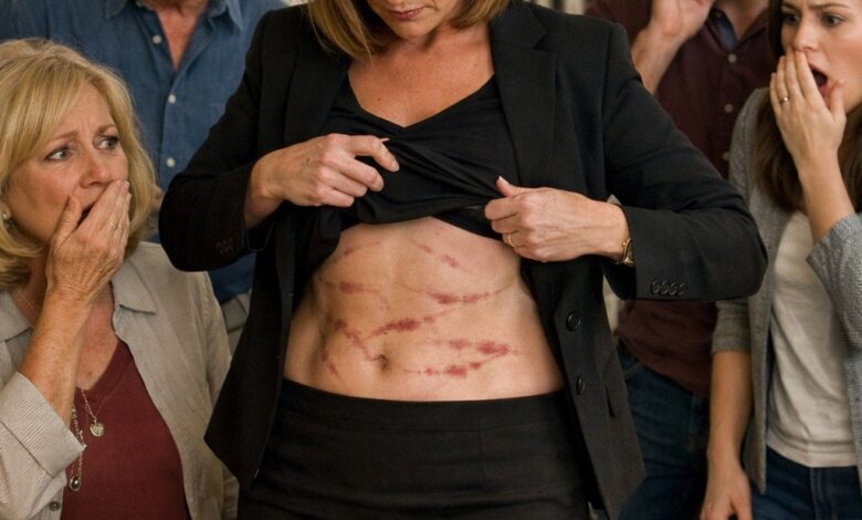 I stood up slowly, the eyes of every aunt, uncle, and cousin fixed on me. I unbuttoned my blazer and slid it off my shoulders. Then, I opened the first few buttons of my white shirt. Gasps rippled through the hall. I didn’t need to speak; the scars spoke for me. The raised, angry tissue across my collarbone, the jagged remnants of burns along my ribs, and the deep surgical furrow under my arm—they were a map of a day Brooke could never understand.