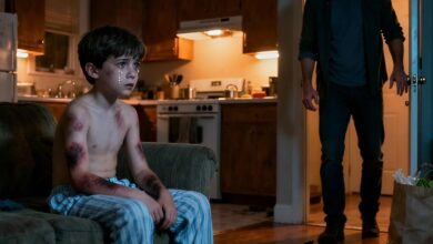I arrived home late and froze, My seven-year-old son, Johnny, was covered in bruises from head to toe