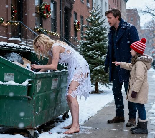 One cold night, while digging through a green bin, a little girl’s voice froze her in place. “Dad, why is she looking for food in the trash?” Renata’s chest collapsed. She wished the pavement would swallow her. But she kept digging, trembling, refusing to turn around.