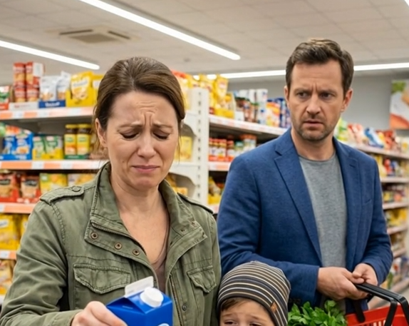 With trembling hands and a face flushed with a shame she didn’t deserve, Sarah pushed the milk back. “I’m sorry,” she murmured. “I have to return this.” Lucas’s disappointment was a physical weight. “No hot chocolate, Mom?” he asked softly. Sarah knelt to his level, swallowing the salt of her own tears. “Not tonight, sweetheart.”