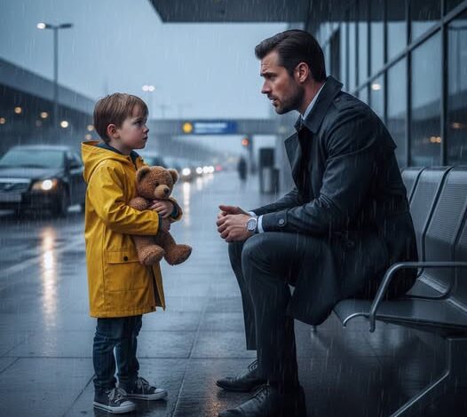 Through the glass wall of the terminal, Gabriel spotted a small boy, about six years old, named Finn. Finn wore a torn yellow raincoat and clutched a loved, fraying stuffed bear, Mr. Buttons. Finn’s mother, Haley, was working the night shift, cleaning the terminal floors, leaving him to wait quietly. Finn, having recently endured a bully’s cruel taunt—“You don’t have a dad. That’s why no one picks you up”—watched the solitary, composed man outside. Finn, with the simple logic of a child, recognized a problem that needed solving.
