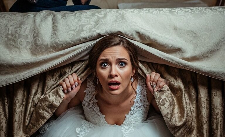I was lying flat on the hardwood floor, still in my white wedding dress, veil tangled above me in the box spring, trying not to laugh. Hiding under the bed on our wedding night was childish, stupid, and exactly the kind of playful thing Marcus used to love. I pictured him entering the room, calling my name, searching every corner. I’d leap out with a loud “surprise” and he’d crack up the way he used to when he was still the man I fell for — spontaneous, warm, a little reckless.