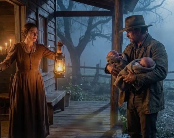 But the sound of the babies crying through the fog broke her resolve. Ten minutes later, Abby was crossing the frozen yard with a lamp and her coat thrown over her nightdress. What she saw in the barn undid her completely: Caleb sitting on the ground, rocking the twins beneath his coat, humming like a man trying to keep the world from ending.