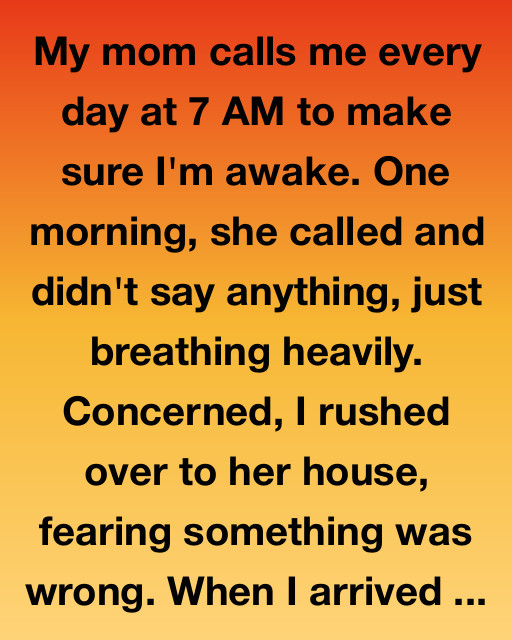 Every morning at seven, my mom calls to make sure I’m awake. It’s a ritual we’ve kept for years—her cheerful voice, my half-asleep mumbling, a quick reminder to eat breakfast. But that morning, something was wrong. When I picked up, I heard only breathing—ragged, uneven, struggling. “Mom?” I said. “Mom,…