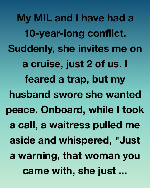 For a decade, my mother-in-law and I had been locked in a cold war—smiles for the family, tension beneath every word. Then one day, out of nowhere, she invited me on a cruise. Just the two of us. She said she wanted to “make peace.” My husband swore she meant…