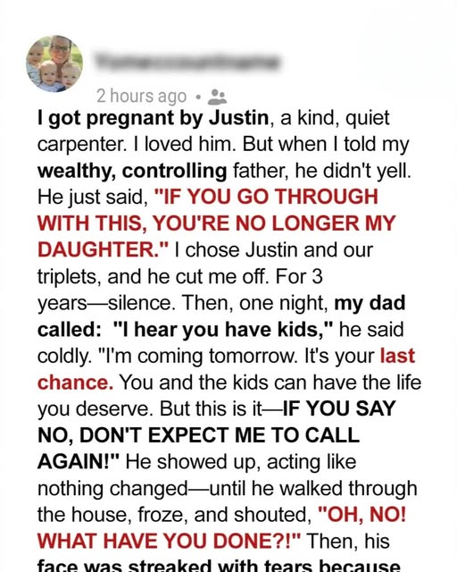 My father’s last words to me before I left home still echo in my mind:“If you go through with this, you’re no longer my daughter.” I was twenty-five — young, hopeful, and newly pregnant. I was in love with Lucas, a humble carpenter whose hands carried both strength and sincerity.…