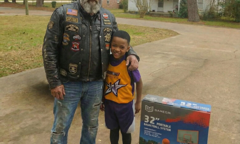 I wasn’t planning to stop. I was halfway through a long ride, the kind you take when you’re trying to outrun something in your own head. But then I spotted a kid on the sidewalk, shooting a beat-up basketball into a rusted trash can and crying like his whole world had collapsed. That’s what made me pull my Harley over.
