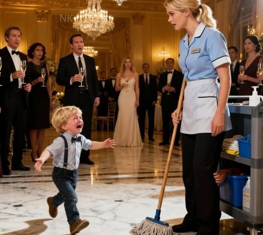 No one moved. No one breathed. The boy who hadn’t spoken a single word since his mother died over a year ago had just broken his silence—and he was clinging to a woman in a gray uniform with a mop still in her hand.