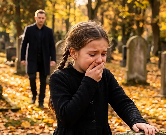 Every Sunday, Richard made the solemn pilgrimage to Evergreen Memorial Park. He brought white lilies, despite remembering Andrew’s voice echoing in his head: “Spend it on someone who actually needs it.” On this particular Sunday, however, Richard’s private sanctuary was occupied. A young girl, no more than nine or ten years old, knelt in the grass, her hand resting tenderly on the headstone. She wasn’t wailing; she was crying with a quiet, hollow intensity that suggested a grief far older than her years.