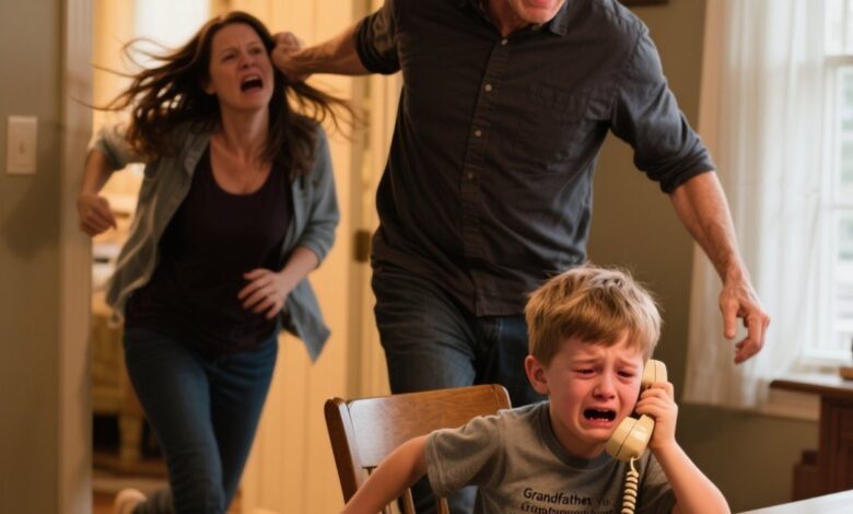 “Grandpa,” he whispered, his voice cracking. “Dad is hurting Mommy.”